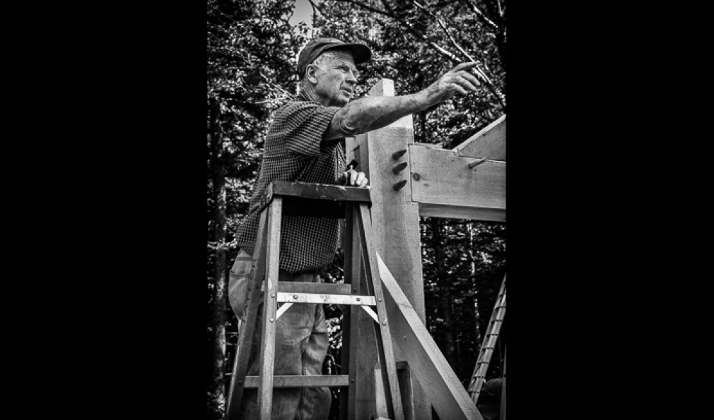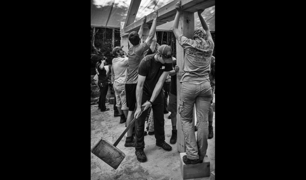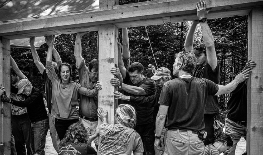 David Goodwin ’74 (at left) and the team raise and set a wall plate.