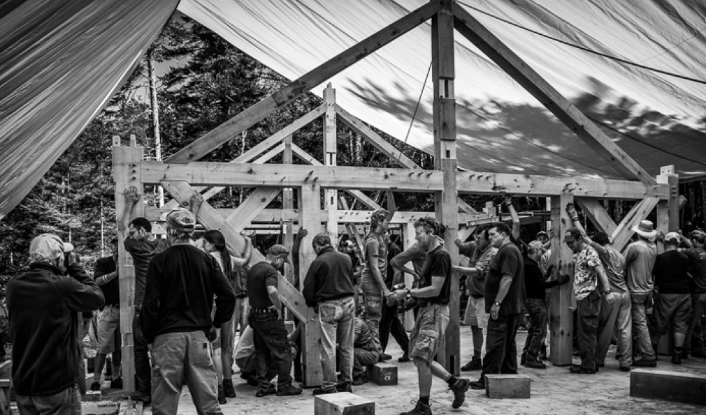 Timber and teamwork join forces as the new Class of 1966 Bunkhouse takes shape on Mount Moosilauke.