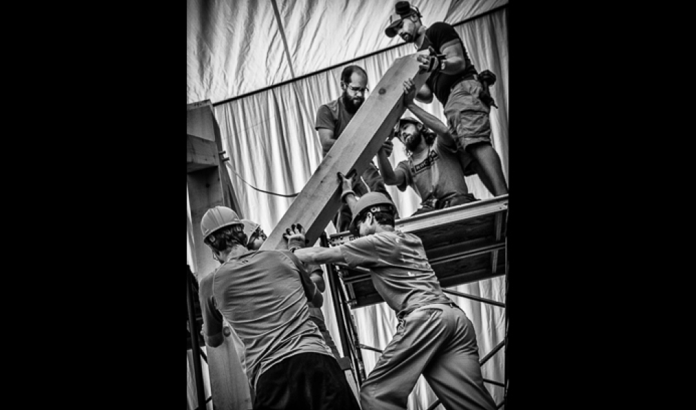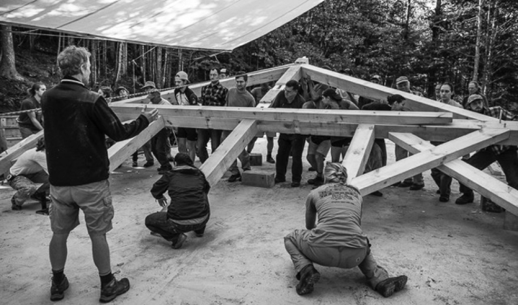 Josh Jackson, lead instructor, directs the team in raising the bent.