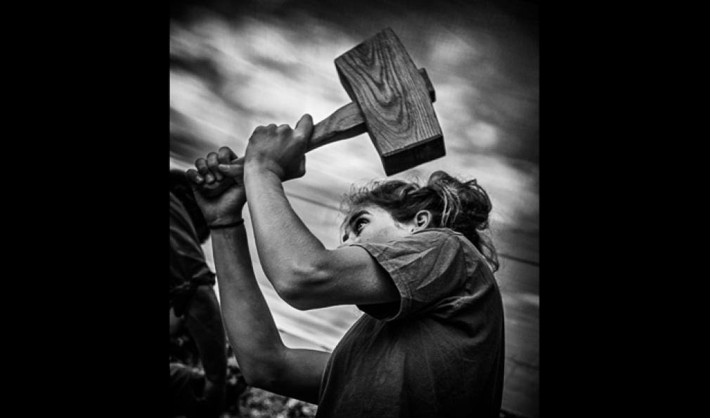 Gerben Scherpbier ’13 swings “the Commander” sledge to precisely seat the bent.